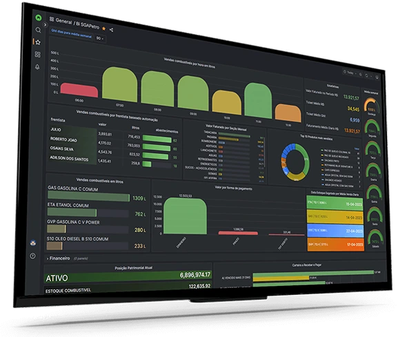 Visualize as informações mais relevantes do seu posto em tempo real, em um único painel